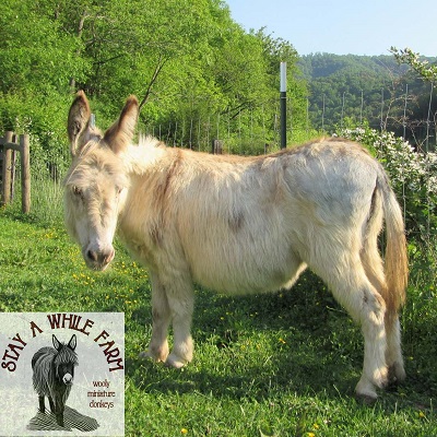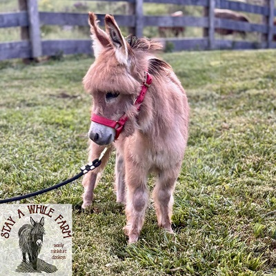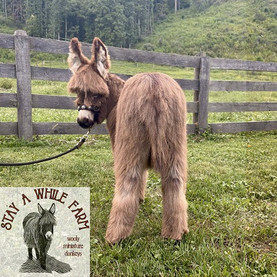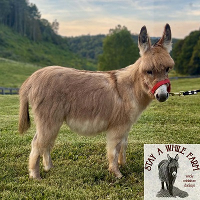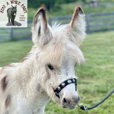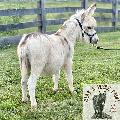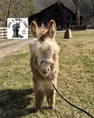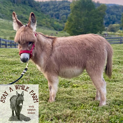 *We will not sell single donkeys to homes that do not have other another appropriate donkey as a buddy. They are much happier animals and better pets if they have a donkey friend. Single donkeys develop very unpleasent behavioral issues even when kept with other livestock. Stay A While Farm will cancel your bid and remove you from future auctions if you cannot provide an appropriate donkey companion for your purchase.