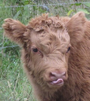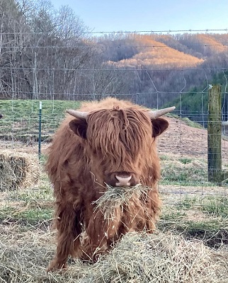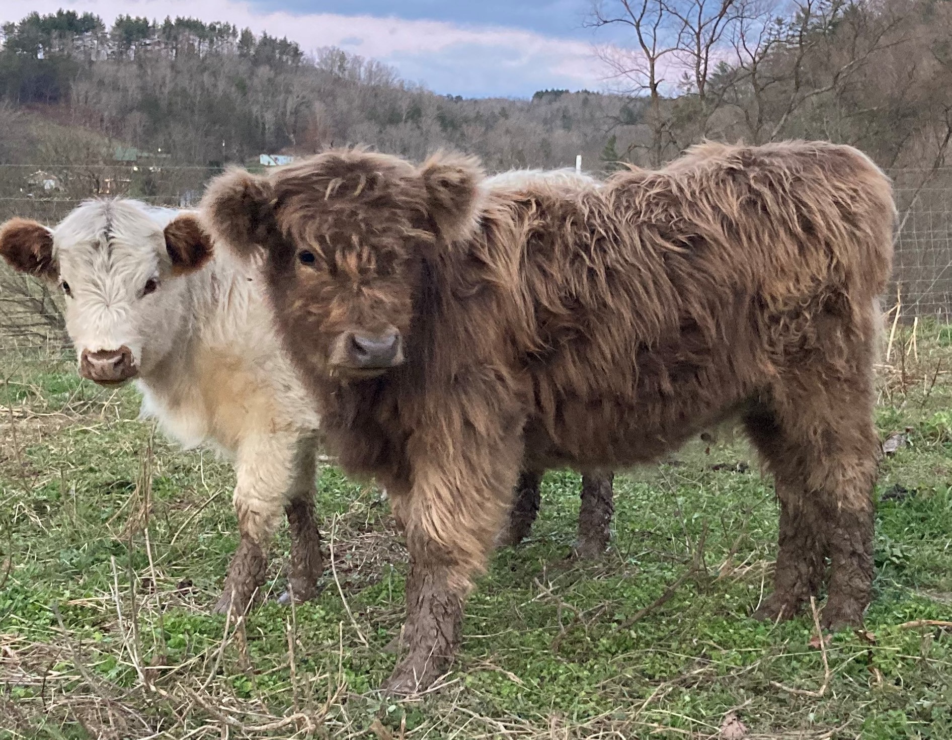 Highland cross (cross unknown), mid-sized. Curly is a good field brood cow. Has a polled HighPark steered calf by her side born mid-March 2022. USDA EID tagged, dewormed, vaccinated with Triangle10, 20/20 Vision7, & M.haemolitica/Pasteurella. Price includes vet health certificate for interstate travel.
